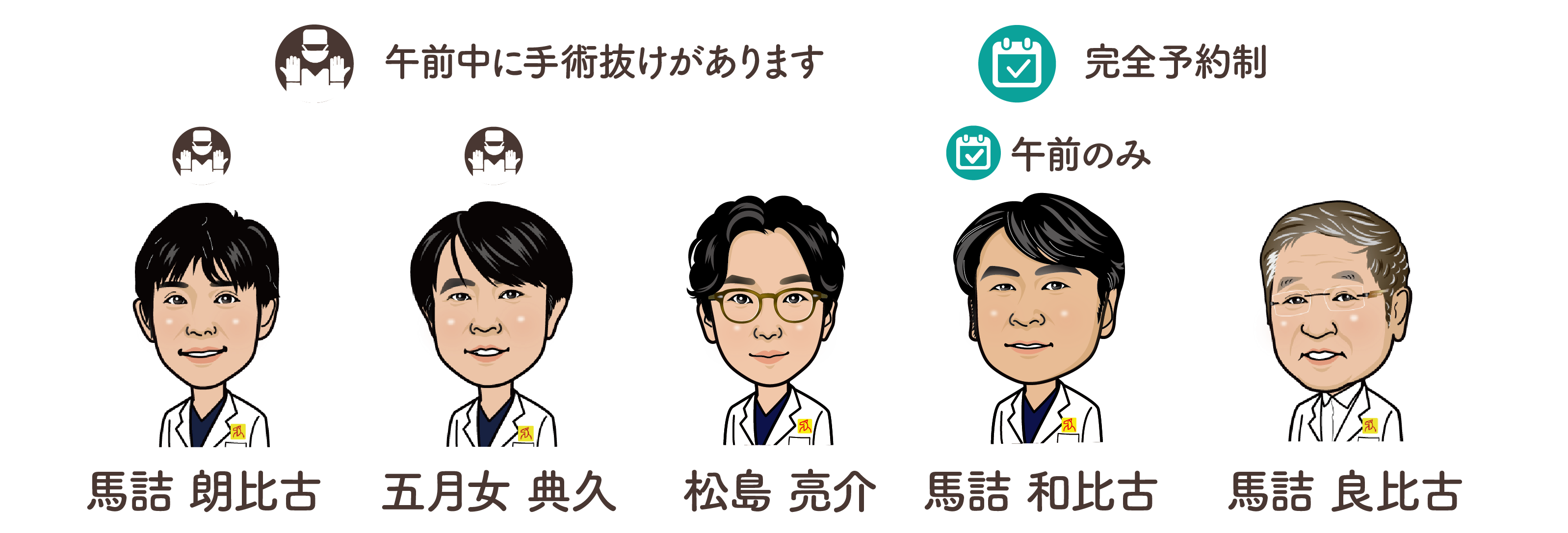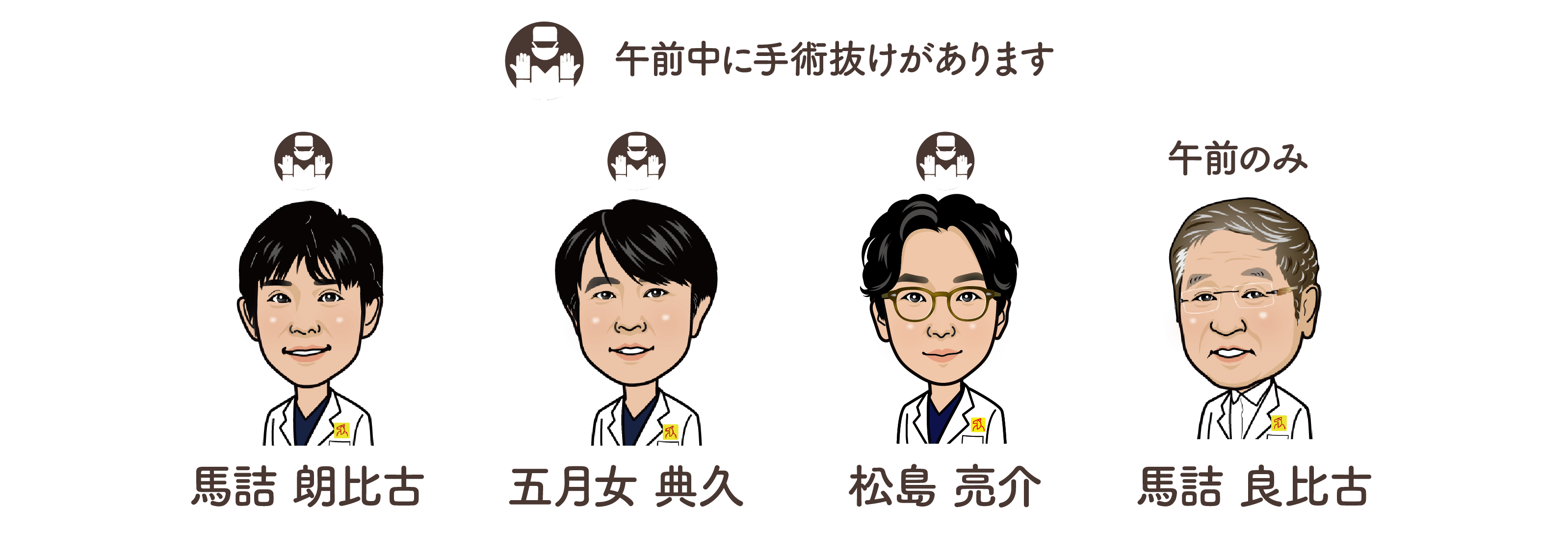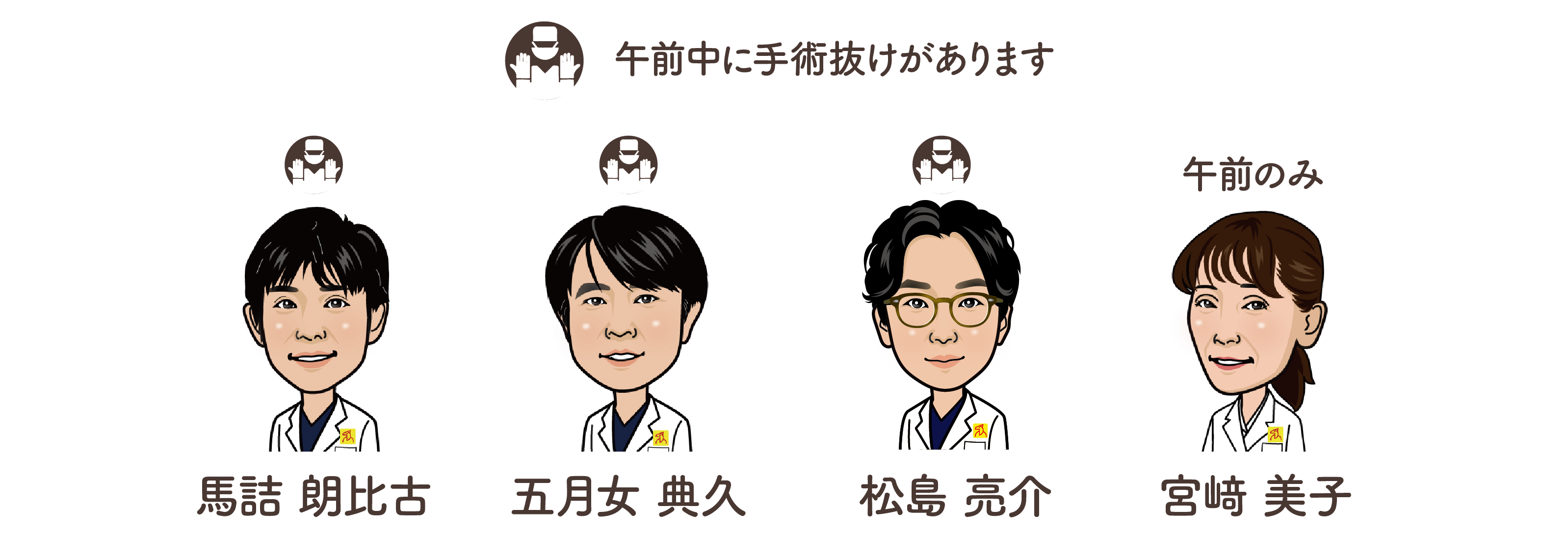 ![]() | 手術あり。手術の状況により医師が外来を抜けます。あらかじめご了承ください。 |